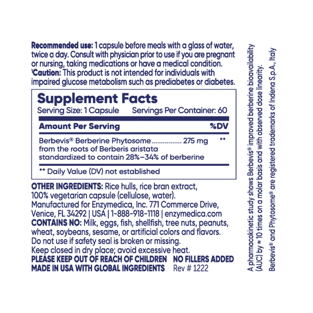 The alkaloid berberine has long been used for various health benefits. A giant leap beyond ordinary Berberine, Enzymedica’s Berberine Phytosome supports blood sugar metabolism, healthy body composition – and heart, circulatory and immune health.